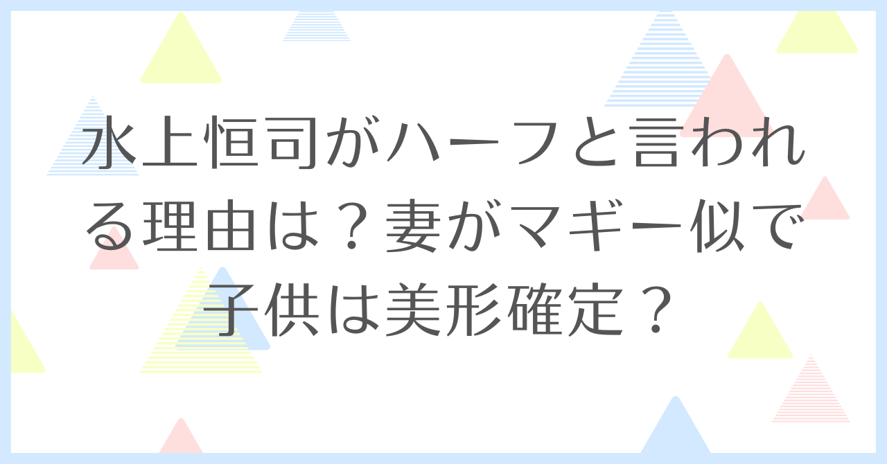 この記事では、水上恒司さんがハーフと言われる理由や家族構成、またマギー似と言われる結婚相手について調査していきます。